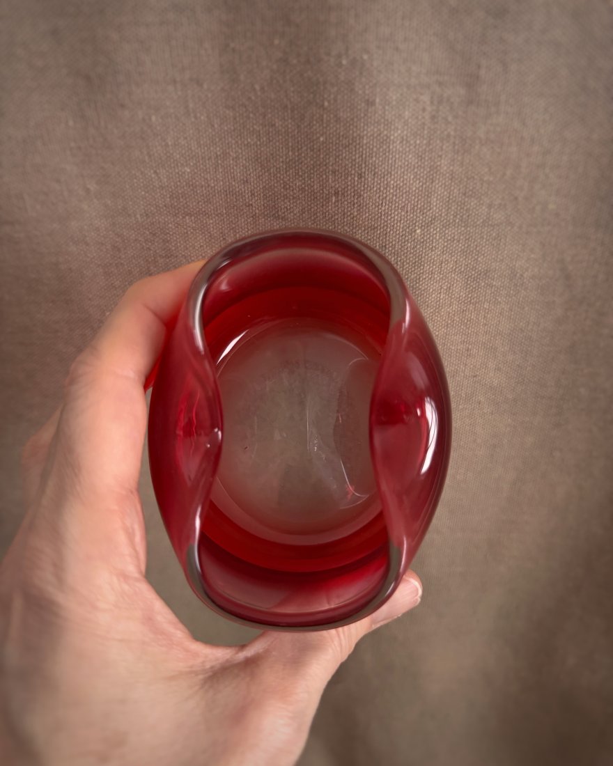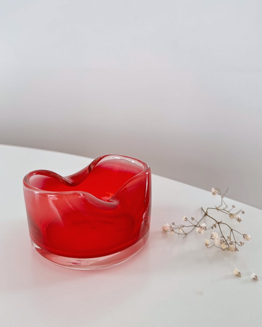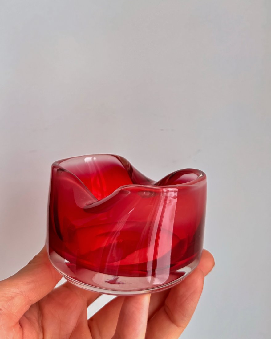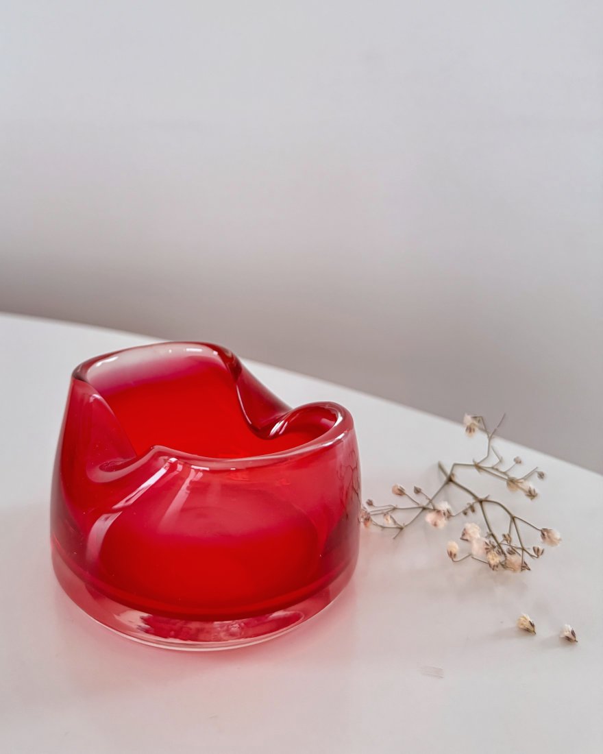 Popielnica na dwa papierosy z ręcznie formowanego, dwuwarstwowego szkła sodowego.