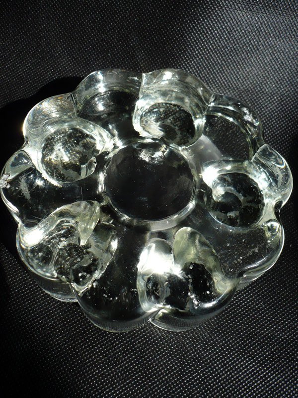 Szklana, gruba i ciężka popielniczka w kształcie połączonych serc - lata 60-te.