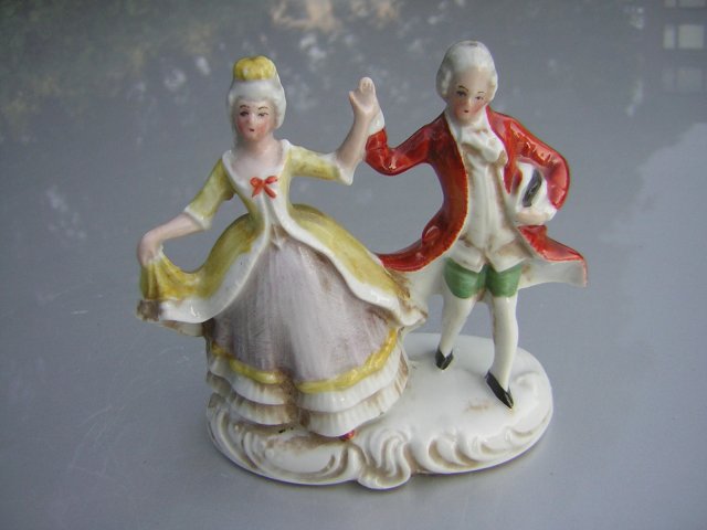 Porcelanowa figurka vintage, sygnowana GERMANY 20731. Startej daty, ciekawa, szlachetnie wykonana. Ręcznie podmalowywana, satynowo błyszcząco szkliwiona. Pusta w środku z dziurką od spodu. Ciekawa, dekoracyjna, symboliczna, śliczna; )