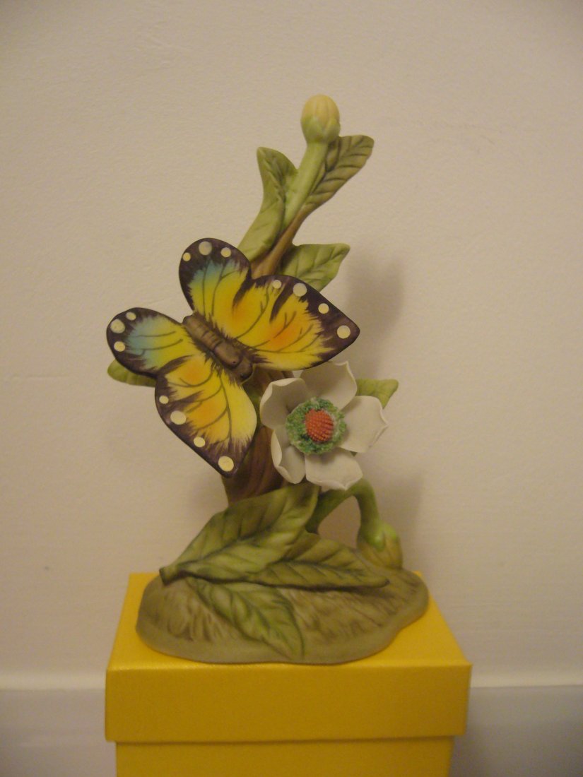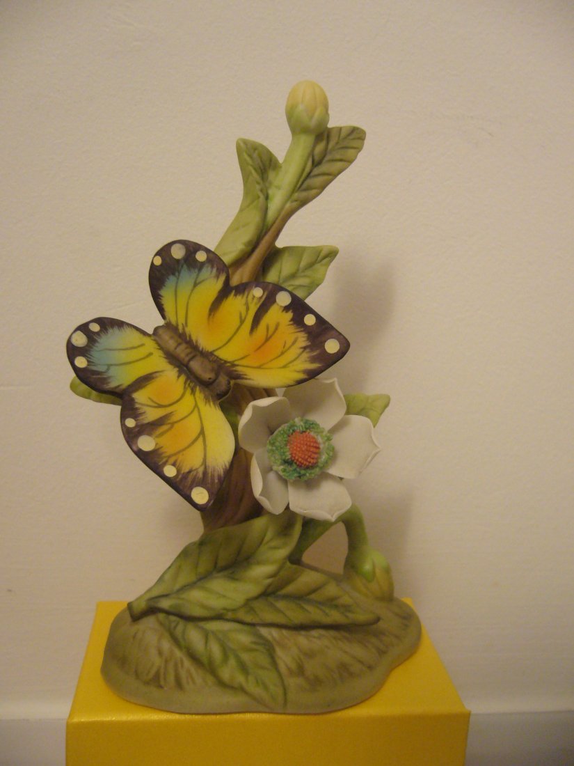 Piękna figurka z motylem wykonana z porcelany biskwitowej nie szkliwionej,sygnowana finesse porcelain SAXONY