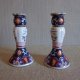Para ładnie zdobionych porcelanowych świeczników, sygnowane, prawdopodobnie chińskie, stan zachowania dobry.