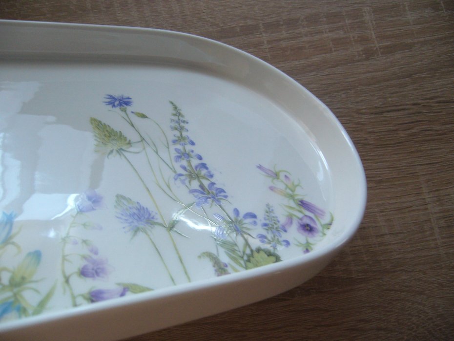 Porcelanowy półmisek owalny z motywem kwiatowym.Wymiary : 30 cm x 15,5 cm.Można myć w zmywarce.Marka Villa Italia.Stan nowy bez pudełka.