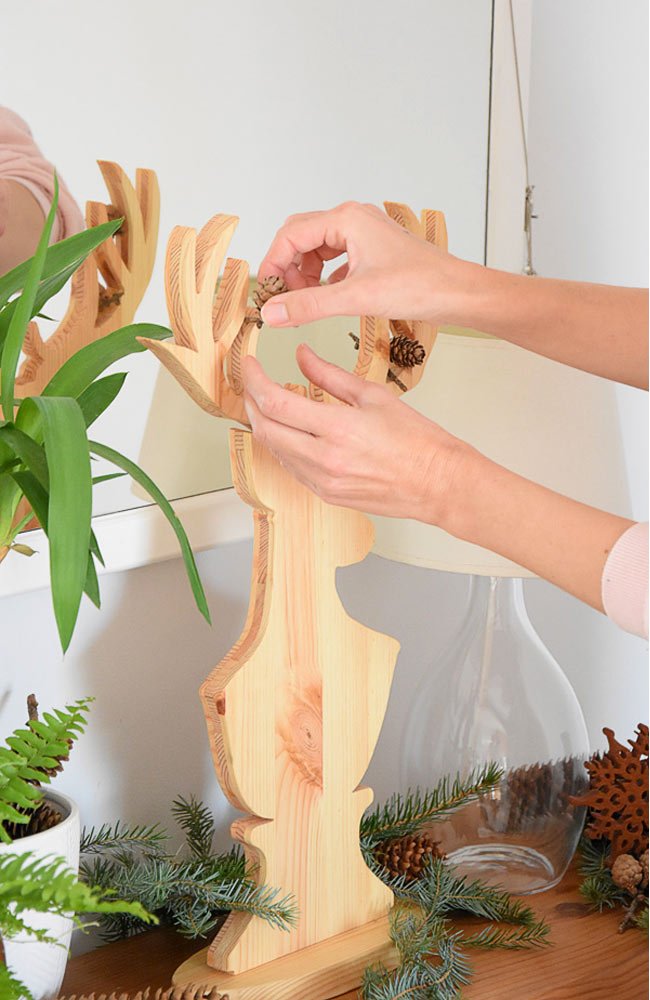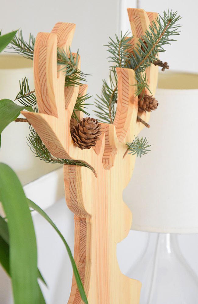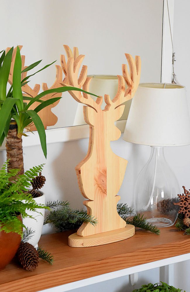 Duża, drewniana figurka w kształcie popiersia jelenia. Całość wycinana ręcznie, dokładnie szlifowana i zaolejowana.