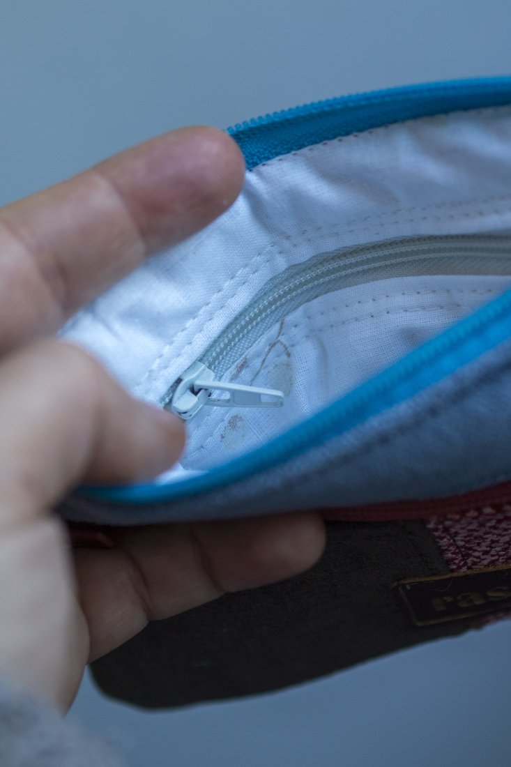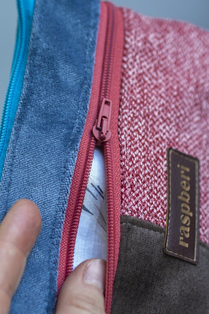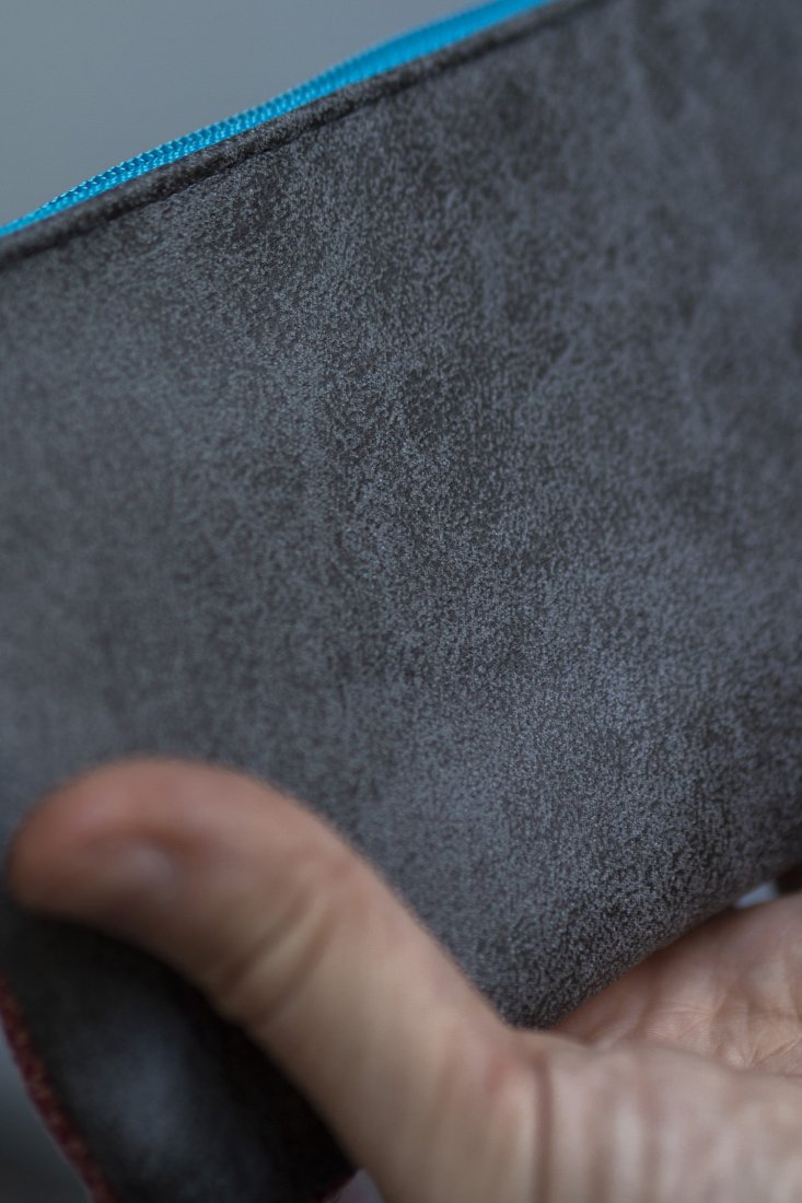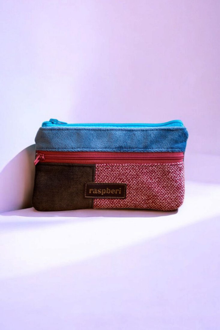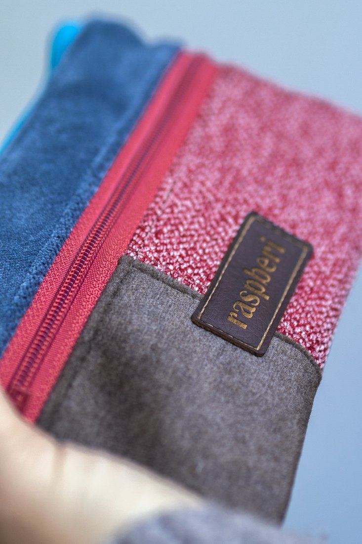 Prosty wodoodporny portfel wykonany z kilku rodzajów tkanin tworzących wspólnie ciekawą wizualnie całość.