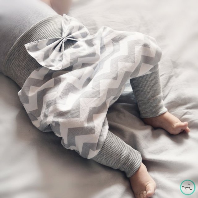 Śliczne portki na lato wykonane z cienkiej bawełny w szaro-biały zygzak. Bardzo wygodne, luźne. Spodenki wykończone szarym ściągaczem. Z przodu ozdobna kokardka.