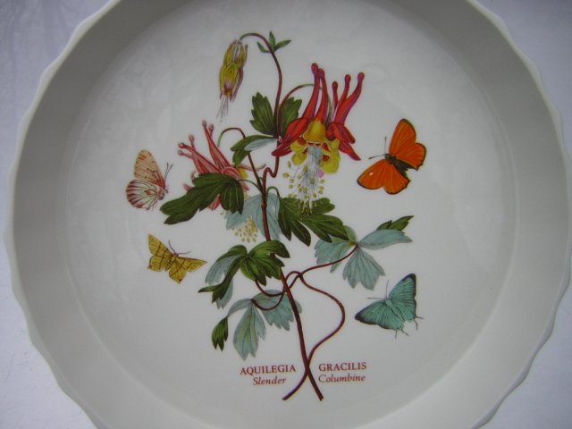 Naczynie do zapiekania sygnowane jakością PORTMEIRION the botanic garden dishwasher proof oven to table freezer & microwave safe. Made in England. Ze zdobieniami autorstwa Susan Williams-Ellis.