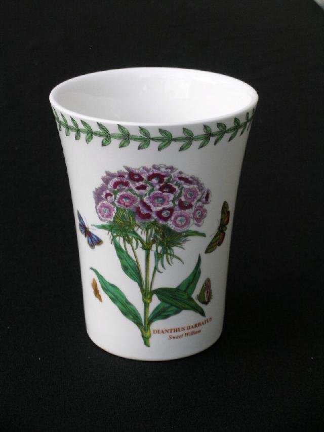 Wielkiej urody duży kubek porcelanowy z kultowej serii Botanic Garden od Portmeirion. Klasa i elegancja. Bardzo wygodny, doskonały na kawę z mlekiem :) Praktyczny, nadaje się do piekarnika, mikrofalówki, zmywarki, zamrażarki. Dół 6,5; góra 9; wysokość 11,5 cm. Stan zachowania bardzo dobry. Wartość kolekcjonerska :)