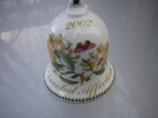 Szlachetnie porcelanowy dzwonek z kultowej serii The Botanic Garden ze zdobieniami Susan Williams-Ellis. Najwyższa jakość porcelany od Portmeirion. Fantastyczne kolory, fantastyczny wzór. :) Napis na dzwonku 2002 honeysuckle i devoted affection ładnie stylizowane. Klasyczna forma. Porcelanowe ucho do powieszenia, ciemno zielona wstążka. Pochodzi z serii The portmeirion decorative ornament .