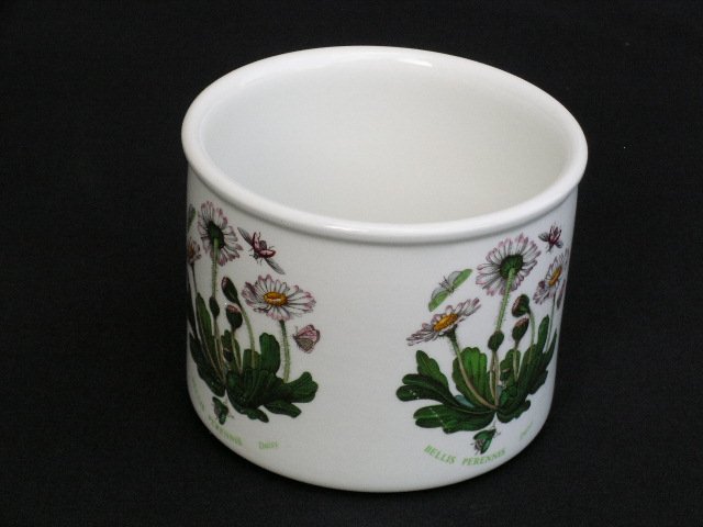Duży porcelanowy Pojemnik sygnowany PORTMEIRION Made in England z rysunkami Susan Williams Ellis. Z kultowej serii BOTANIC GARDEN /Dishwasher proof; oven to table; freezer & microwave safe/. W pełni użytkowy i przepięknie zdobiony. Mocny,szlachetny. Na cieplej bieli porcelany Bellis Perenis i charakterystyczny motyle, biedroneczka..... w przyjemnych dla oka żywych barwach. Całość na błyszcząco szkliwiona.