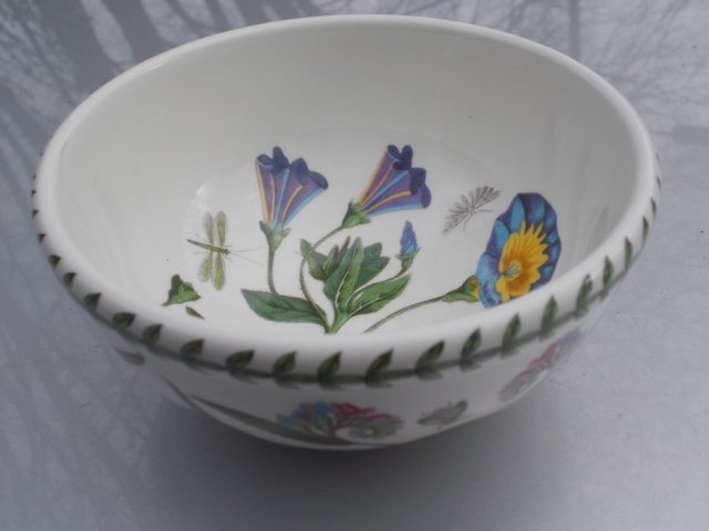 Porcelanowa MIska z jednej z najulubieńszych manufaktur porcelany w angielskim Portmeirion. To u nich powstały magiczne serie The Botanic Garden, The Magic Garden, The Birds of England... Założona na początku lat 50-tych manufaktura postawiła na jakość wyrobów i wytworne artystyczne zdobienia, inspirowane naturą. Wśród setek wyszukanych form i przedmiotów - a wszystkie użytkowe !! porcelanowe !! -Tu dość Duża MIska Naczynie kuchenne.. Przepiękny wzór kwiatowy autorstwa Susan Williams Ellis - z dużym prawdopodobieństwem jest to przedmiot z początków funkcjonowania manufaktury w Portmeirion, a więc z magicznych lat 50-60-tych Charakterystyczne motylki i szlaczek. Błyszczące szkliwienie. Użytkowo jak najbardziej do zastosowania nie tylko i w kuchni, także w funkcji salonowej... Absolutny rarytas i nieoceniona przyjemność w użytkowaniu..Rzadko spotykana forma i zdobienie.