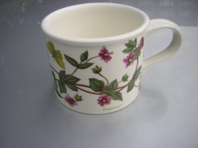 Kubek doskonały :) Sygnatura jakości Portmeirion, z kultowym zdobieniem botanicznym wg Susan Williams-Ellis. Piękne kwiatowe zdobienie, kilka magicznych owadów, ciepła śmietanowa biel, przyjemne barwy i błyszczące szkliwienie. Solidny, szlachetny, wygodny. Do zmywarki, mikrofali, zamrażarki - w pełni użytkowy.