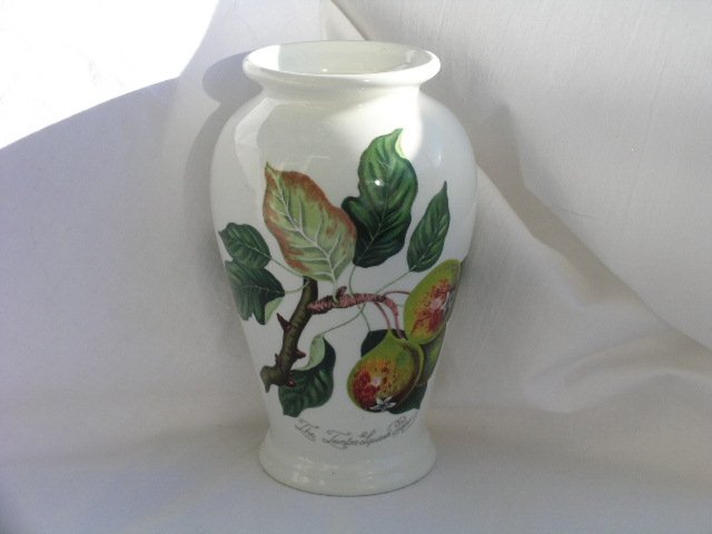 Porcelanowy wazon z manufaktury Portmeirion. Dawnej daty edycja z jabłkowej serii Pomona, Bogini Owoców :) Sygnowany. Z botaniczną malaturą i błyszczącym szkliwieniem.