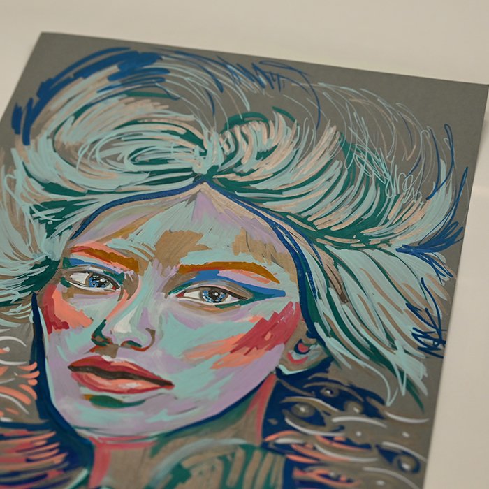 Portret na papierze 200 gr, stworzony pisakami akrylowymi. Wykorzystane tez pisaki w kolorze złotym. Sprzedawany bez ramy. format A4 cm. Sprzedawana bez ramy.