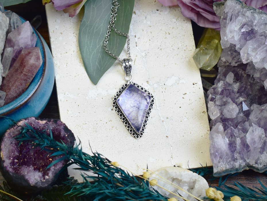 Poza tym zajmuję się oprawą kamieni. Używam kamieni naturalnych, kocham labradoryty, ametysty i kwarce. Do oprawy używam miedzi i cyny w technice tiffany oraz miedzi do elektroformowania. Inspiruję się naturą chcąc stworzyć wisiorki i amulety wyglądające jak z gier fantasy :)