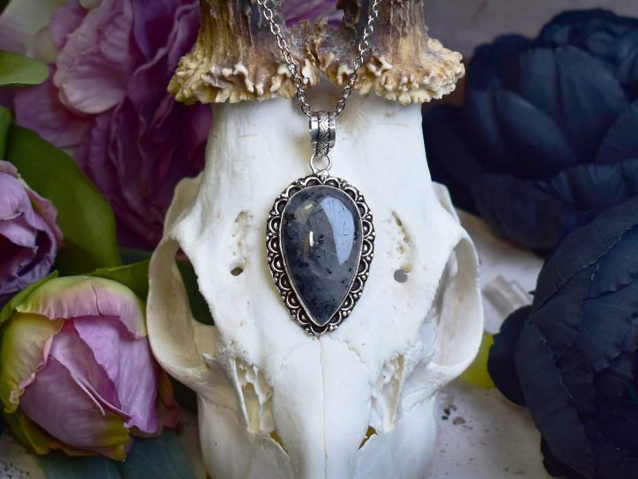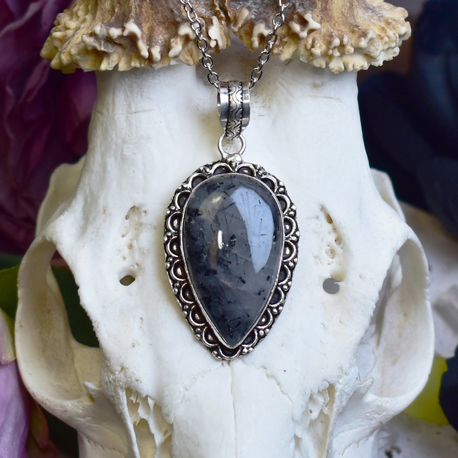 Miedziany wisiorek pokryty srebrem próby 925, wykonany tradycyjnymi metodami rzemieślniczymi, ozdobiony kwarcem z czarnym rutylem. Kamień zachwyca kontrastowym połączeniem przejrzystego kwarcu z naturalnymi, ciemnymi inkluzjami rutylu, tworząc efekt wyrazisty, a zarazem elegancki. Prosta, klasyczna forma podkreśla unikatowy rysunek minerału i nadaje biżuterii ponadczasowy charakter. Kwarc z czarnym rutylem kojarzony jest z ochroną, klarownością myśli i wzmocnieniem wewnętrznej siły. Połączenie chłodnego, srebrzystego wykończenia z wyrazistą strukturą kamienia tworzy harmonijny, szlachetny wisiorek dla osób ceniących minimalizm, rękodzieło i naturalne kamienie o symbolicznym znaczeniu.