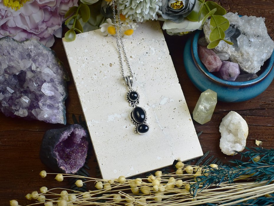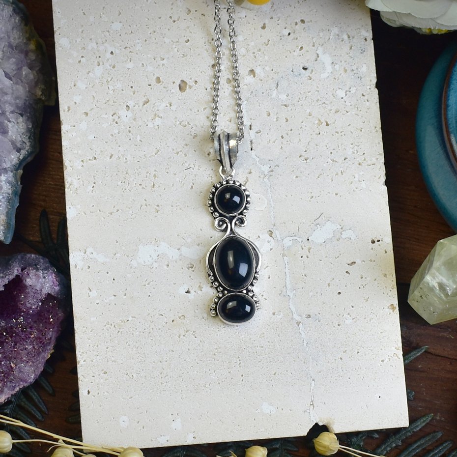 Miedziany wisiorek z onyksem, wykonany tradycyjnymi metodami rzemieślniczymi, a następnie posrebrzany. Onyx, kamień o głębokiej czerni, symbolizujący siłę i stabilność, jest idealnym wyborem dla osób szukających wyjątkowej biżuterii. Wisiorek łączy elegancki design z klasycznym rzemiosłem, tworząc unikalny element, który pasuje do różnych stylizacji. Delikatne posrebrzenie nadaje mu subtelnego blasku, a sam kamień emanuje spokojem i pewnością.