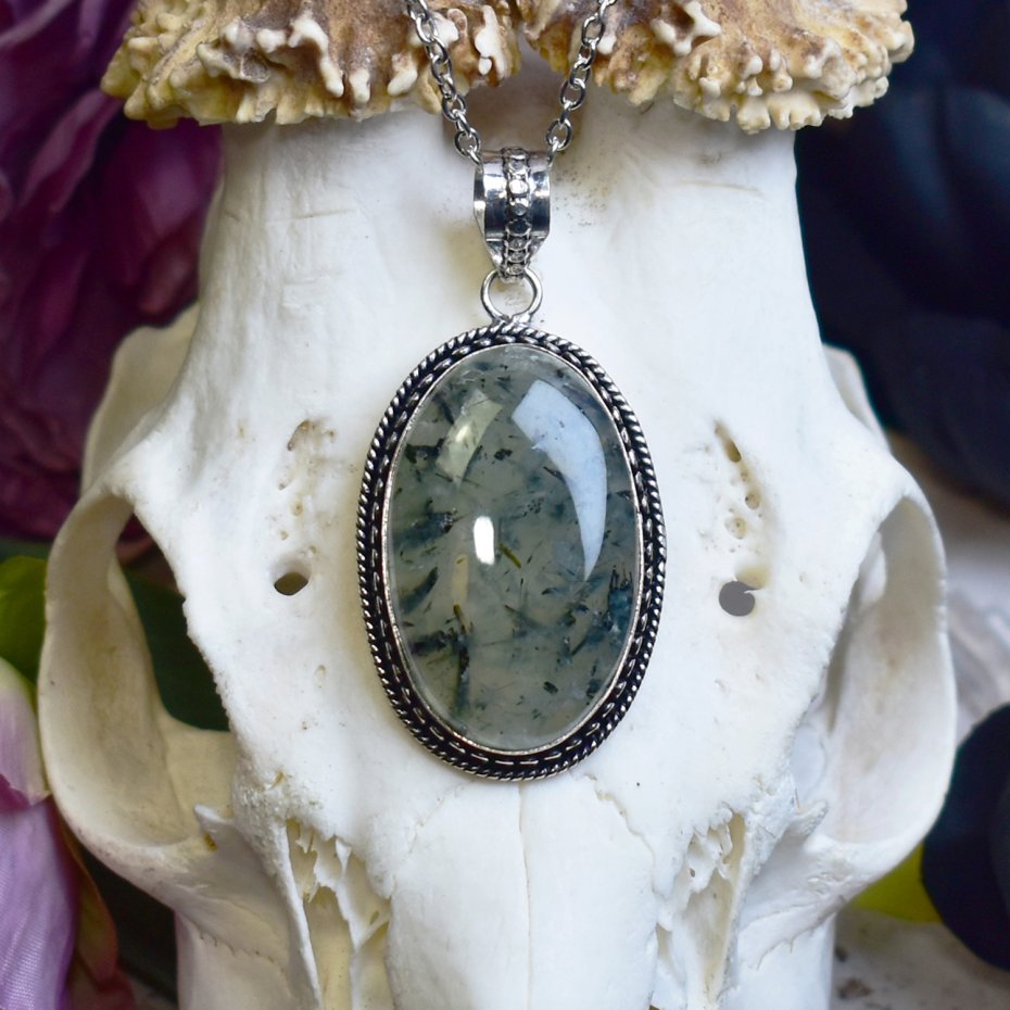 Miedziany wisiorek pokryty srebrem próby 925, wykonany tradycyjnymi metodami rzemieślniczymi, ozdobiony prehnitem – kamieniem o delikatnej, zielonej barwie z subtelnym, naturalnym połyskiem. Prosta, minimalistyczna oprawa pozwala w pełni podkreślić naturalne piękno kamienia, tworząc elegancki i ponadczasowy projekt. Prehnit jest kamieniem harmonii, wspierającym spokój umysłu, równowagę emocjonalną i wewnętrzną jasność. Połączenie stonowanego odcienia kamienia z srebrnym wykończeniem nadaje wisiorkowi subtelny, klasyczny charakter. To idealna propozycja dla osób ceniących rękodzieło, minimalistyczną biżuterię i naturalne kamienie szlachetne.