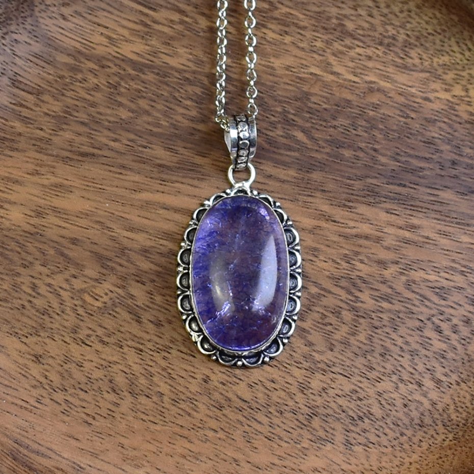 Wisiorek wykonany ręcznie z miedzi, pokryty srebrem. Głównym elementem jest kamień typu Snake Skin Quartz. Kamienie te charakteryzują się unikalnym wzorem przypominającym skórę węża. Każdy wisiorek jest niepowtarzalny ze względu na naturalne różnice w strukturze kamienia. Idealny jako wyjątkowy dodatek do codziennych stylizacji.