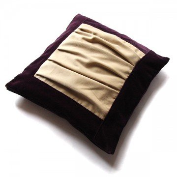 Poszewka na poduszkę 40 x 40 cm. Wykonana z aksamitu w kolorze oberżyny, z przodu wstawka z beżowego aksamitu,faliście drapowanego. Wewnątrz podszewka bawełniana. Poszewka zamykana na suwak. Bez wkładu. Możliwość zamówienia dodatkowych egzemplarzy w danej kolorystyce.