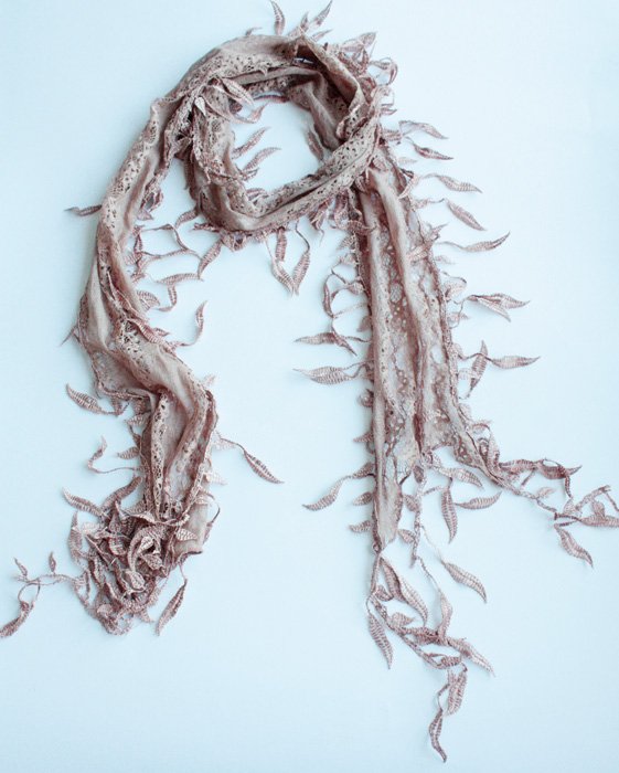 Przedstawiam Państwu niezwykle oryginalny szal o pięnie wykończnych brzegach, które wyglądają jak rozsypane listki. Tkanina lekko elastyczna. Brak metek.