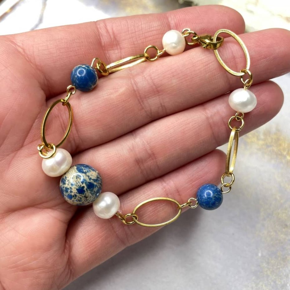 Tagi: #biżuteria z perłami, #bransoletka z jaspisem, #perłowa bransoletka, #perły hodowlane