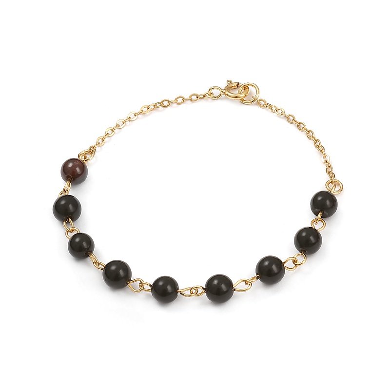 Bransoletka składa się z okrągłych korali onyksów. Elementy wykończeniowe zostały pozłocone, co nadaje bransoletce wyjątkowego szyku i ponadczasowej elegancji. Bransoletka będzie idealnym dodatkiem do eleganckiej stylizacji lub trafionym prezentem dla bliskiej osoby. To biżuteria prosta, a jednocześnie dopracowana w każdym detalu - idealna dla osób, które cenią klasykę w świeżym, współczesnym wydaniu.