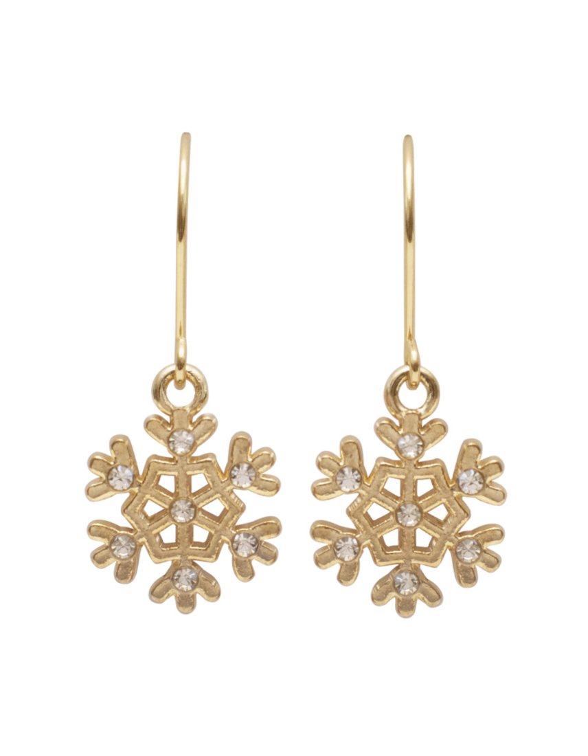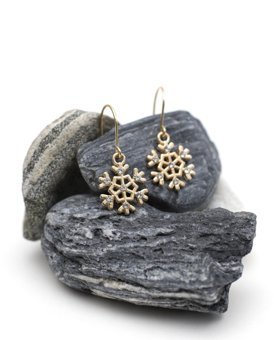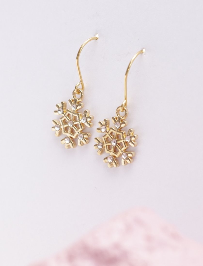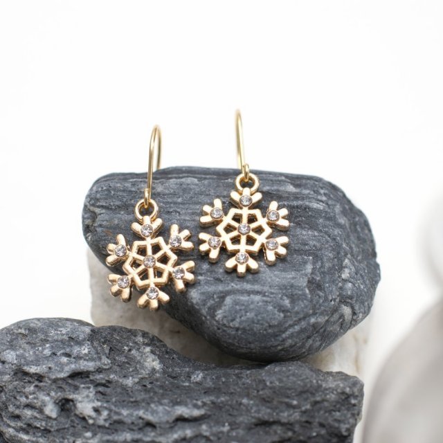 Rozświetl zimowe stylizacje blaskiem wyjątkowych kolczyków w kształcie delikatnych śnieżynek! Wykonane ze stali nierdzewnej i pokryte eleganckim złoceniem, zachwycają subtelnym połyskiem oraz trwałością. Każda śnieżynka ozdobiona została lśniącymi imitacjami cyrkonii, dzięki czemu kolczyki pięknie odbijają światło i dodają wyrafinowanego, świątecznego uroku.