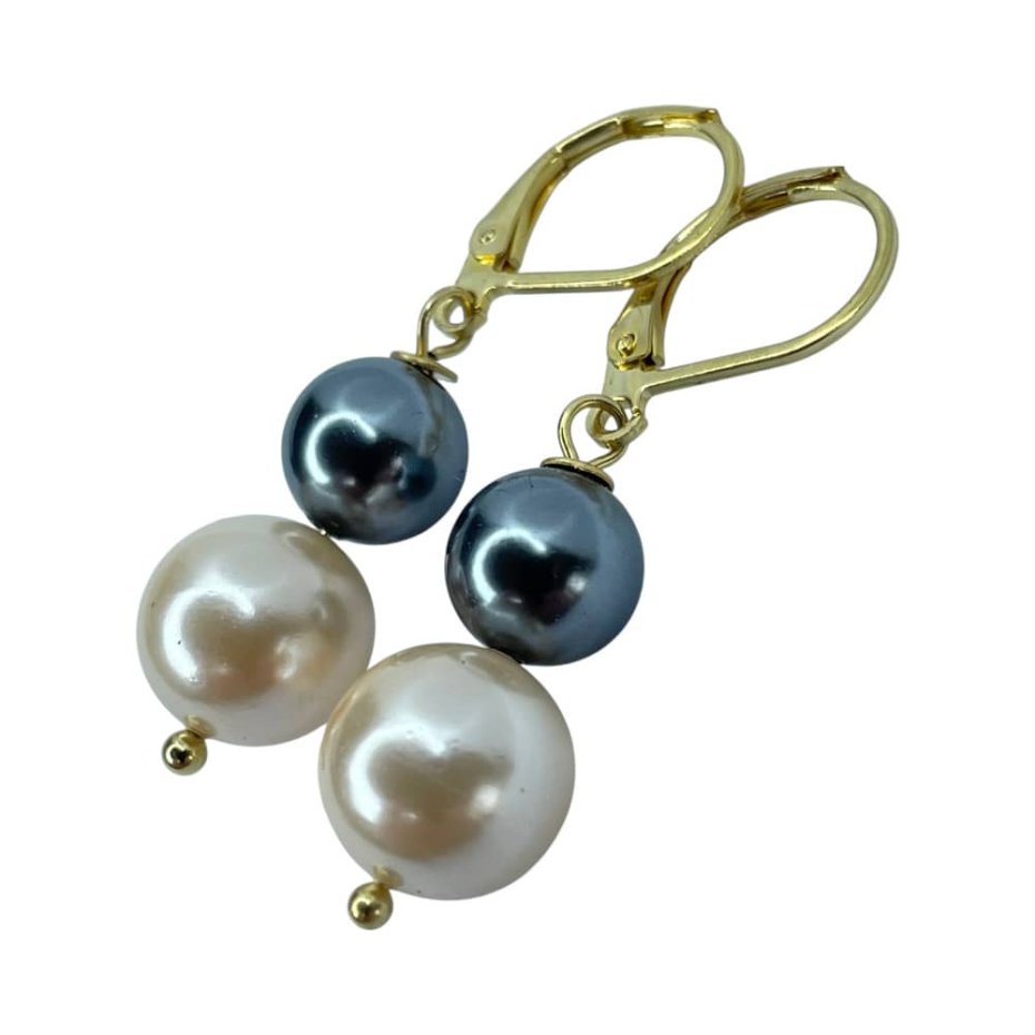 Kolczyki wykonane z pozłacanej stali szlachetnej z dwiema perłami ułożonymi jedna pod drugą to subtelna interpretacja klasycznej elegancji. Górna, ciemniejsza perła oraz dolna, jasna – tworzą harmonijny kontrast, który przyciąga spojrzenie i nadaje całości wyrafinowanego charakteru. Prosta forma podkreśla ponadczasowy styl, a praktyczne bigle angielskie gwarantują komfort i bezpieczeństwo noszenia. To biżuteria, która z łatwością dopełni eleganckie, biurowe stylizacje oraz sprawdzi się na większe okazje.