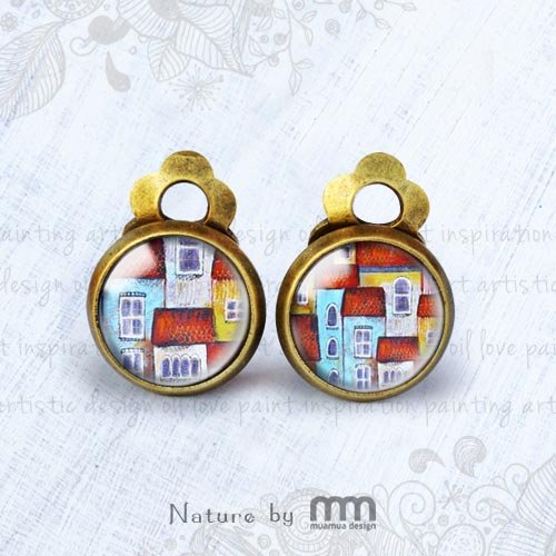 Prague klipsy to bardzo kobiece i malutkie dzieła sztuki, które łączą nowoczesność z odrobiną antycznego powiewu. Obrazki pod szkiełkiem to miniatura autorskiego obrazu. Klipsy pasują świetnie do naszyjnika Prague dostępnego w osobnej ofercie.