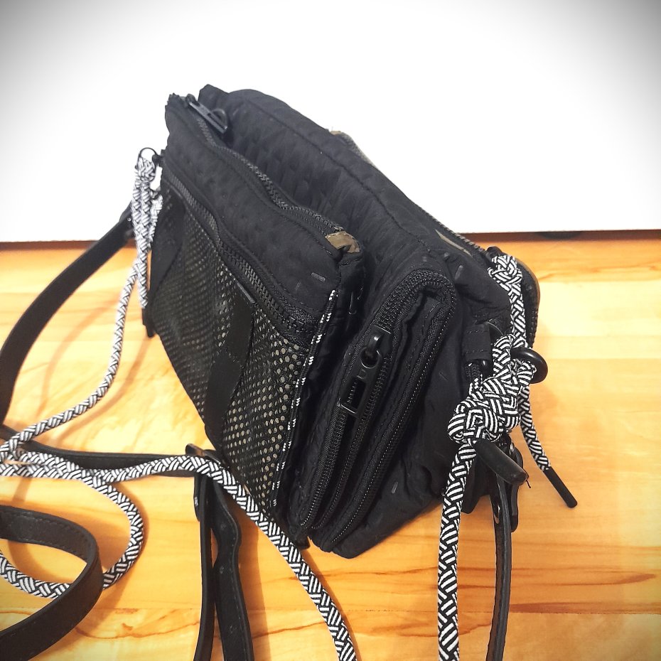 Dokładam czarny dopinany pasek (już na zdjęciu). Torebka posiadała jedynie wersję na sznureczek.