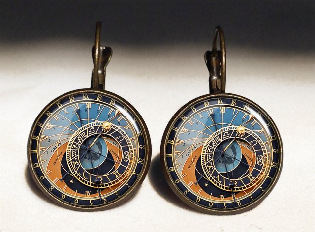 Ręcznie robione kolczyki wiszące z wysokiej jakości grafiką pokrytą wypukłym, powiększającym szkiełkiem.