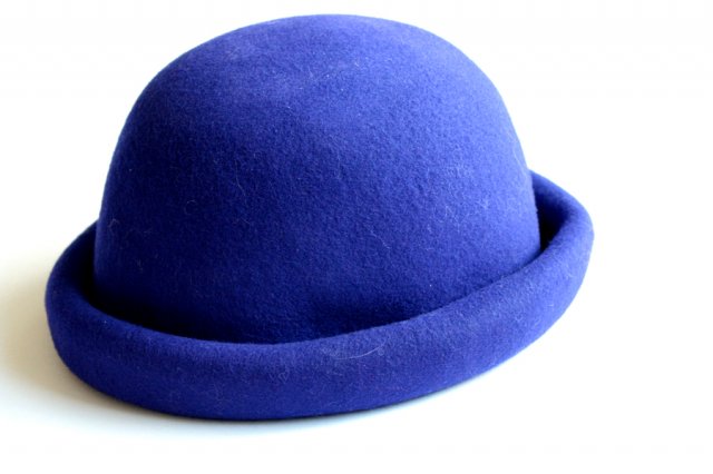 Wełniany melonik w pięknym, głębokim odcieniu kobaltu.
