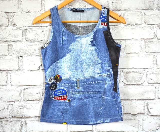 Ciekawa bluzka na pierwszy rzut wyglądająca jak wykonana z jeansu, tymczasem wykoanana jest bardzo przyjemnej elastycznej dzianinki w " jeansowe "wzory. Bluzka ma fason dopasowy do figury.