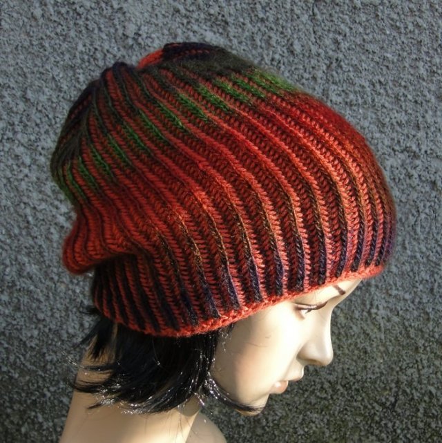 Bardzo twarzowa bezszwowa i dwustronna czapka wykonana ręcznie z 2 rodzajów wysokiej jakości włóczki (100% akryl prod. francuskiej i cieniowanej 50 % wełna, 50% akryl). Ciepła, dość mięsista, miękka. Wykonana dość pracochłonnym ściegiem.