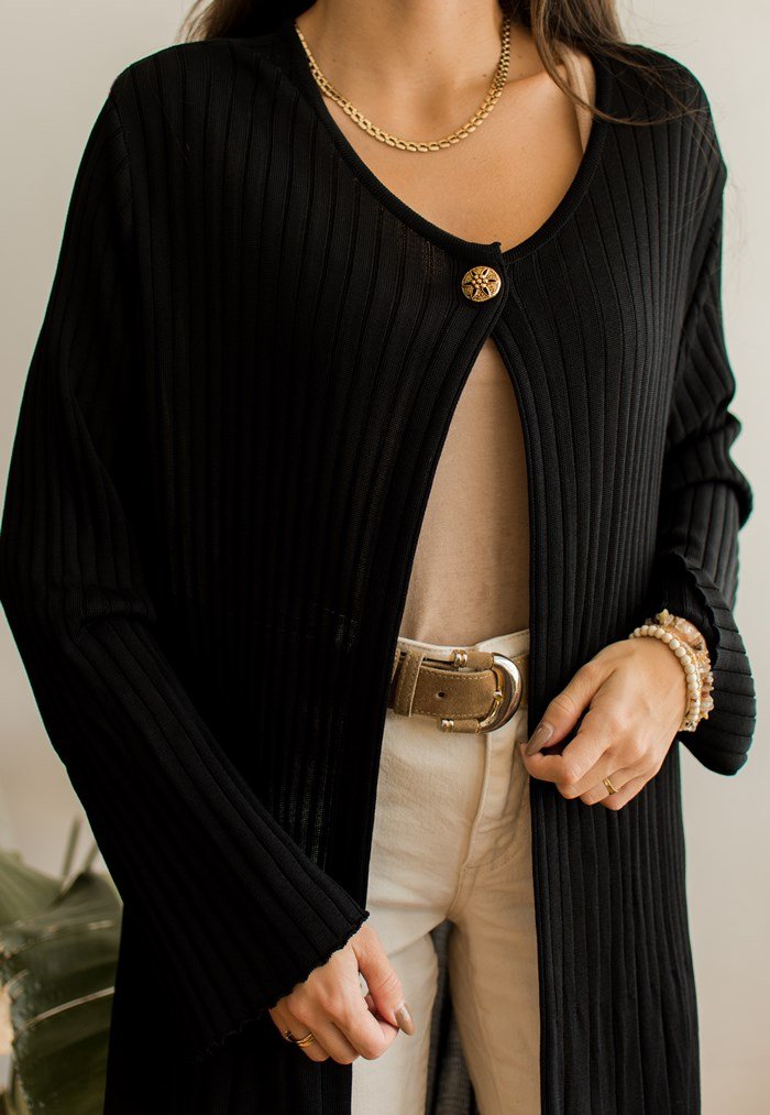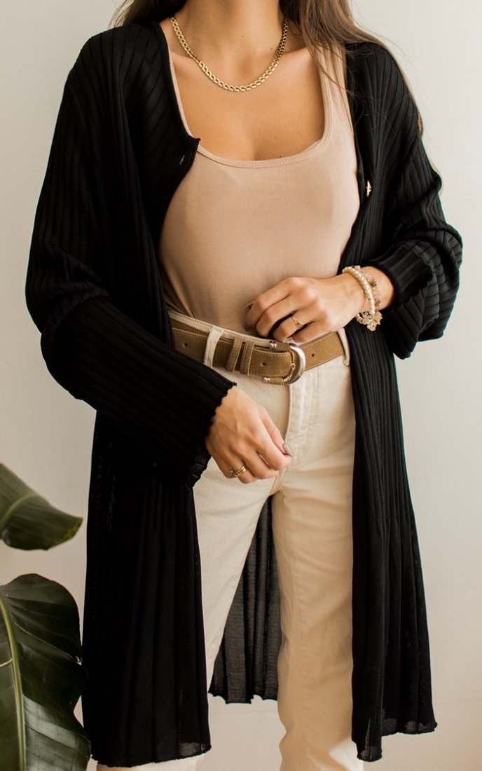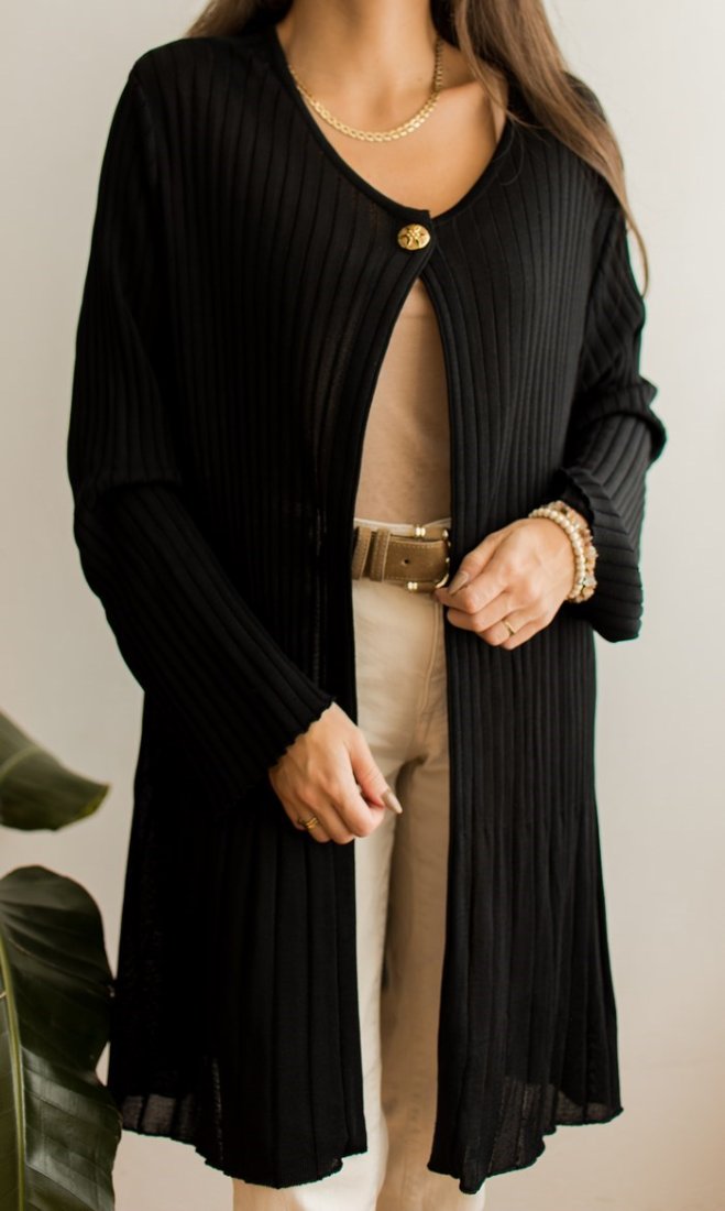 Czarny, prążkowany kardigan