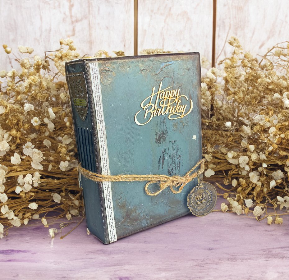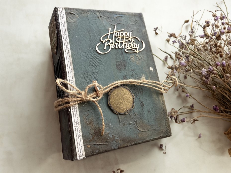 Wykonana ręcznie księga w stylu vintage. Tworzona od podstaw począwszy od własnoręcznie robionej okładki do ręcznie postarzanych i wszywanych kartek.