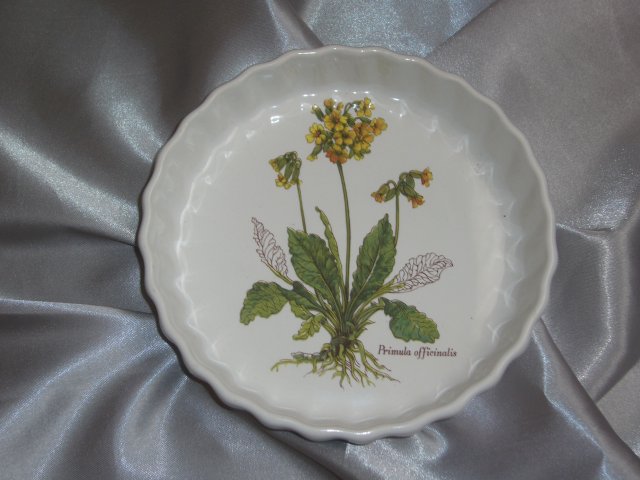 Ceramiczna paterka do zapiekania z motywem primuli, sygnowana Ashley Ceramics England.