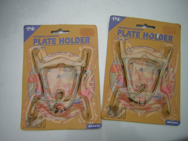 Dwa , metalowe, szlachetne UCHWYTY do powieszenia Talerzy. Nowe, w oryginalnych opakowaniach z folią. Szlachetnie wykonane. Bez rozmiaru podanego na opakowaniu. Rozpiętość w stanie - bez rozciągnięcia sprężynki 11, 5 - czyli do talerzy do 23 cm