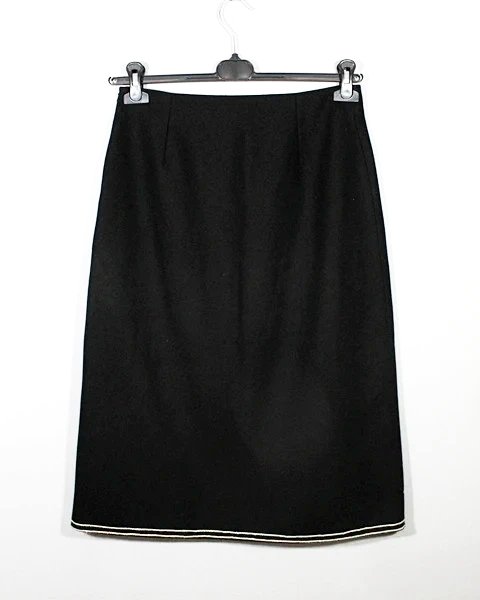 Nowa spódnica znakomitej marki PROMOD , po boku zamek, w dole wyszyta aplikacja, całość na podszewce , doskonała na chłodne dni . Skład tkaniny wg metki - brak info,wg mnie to wełna z dodatkami. Rozmiar wg metki - brak info Wymiary +/- długość - 72 cm talia - 37 cm biodra - 50 cm Stan - nowa bez metek. NIE WYSYŁAM ZA GRANICĘ POLSKI .
