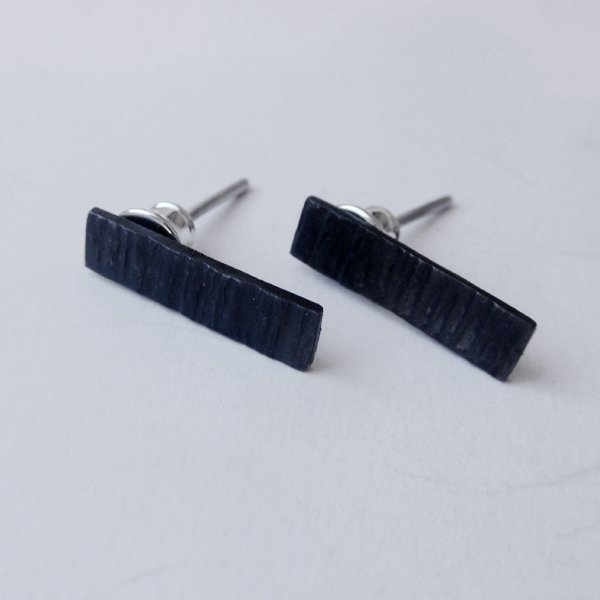 Oryginalność i prostota. Kolekcję cechuje elegancja i prostota jak również ekstrawagancja i indywidualizm. Kolczyki na sztyftach wykonane są z : srebro. Srebro - próby 0,925, fakturowane, oksydowane.Szerokość- 0,5 cm, długość- 1,5 cm. Termin realizacji zamówienia to 1-2 dni.