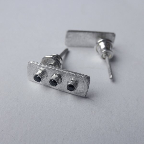 Oryginalność i prostota. Kolekcję cechuje elegancja i prostota jak również ekstrawagancja i indywidualizm. Kolczyki na sztyftach wykonane są z : srebro, cyrkonia. Srebro - próby 0,925, zmatowione.Szerokość- 0,5 cm, długość- 1,5 cm. Termin realizacji zamówienia to 1-2 dni.