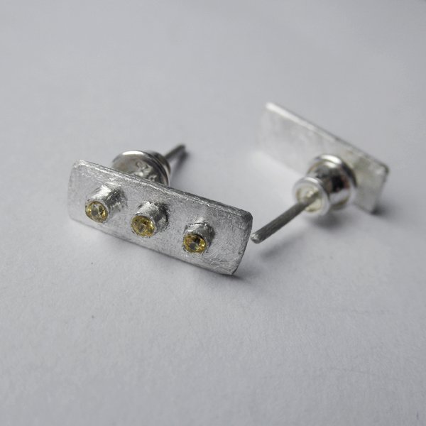 Oryginalność i prostota. Kolekcję cechuje elegancja i prostota jak również ekstrawagancja i indywidualizm. Kolczyki na sztyftach wykonane są z : srebro, cyrkonia. Srebro - próby 0,925, zmatowione.Szerokość- 0,5 cm, długość- 1,5 cm. Termin realizacji zamówienia to 1-2 dni.