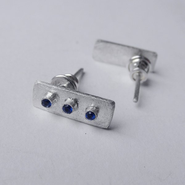 Oryginalność i prostota. Kolekcję cechuje elegancja i prostota jak również ekstrawagancja i indywidualizm. Kolczyki na sztyftach wykonane są z : srebro, cyrkonia. Srebro - próby 0,925, zmatowione.Szerokość- 0,5 cm, długość- 1,5 cm. Termin realizacji zamówienia to 1-2 dni.