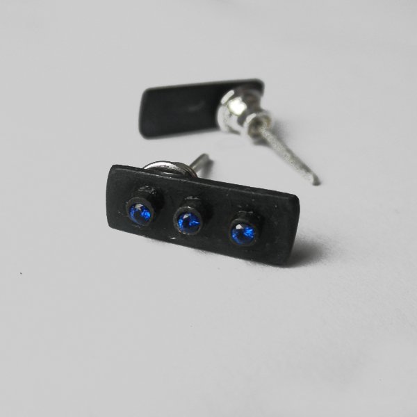 Oryginalność i prostota. Kolekcję cechuje elegancja i prostota jak również ekstrawagancja i indywidualizm. Kolczyki na sztyftach wykonane są z : srebro, cyrkonia. Srebro - próby 0,925, zmatowione, oksydowane.Szerokość- 0,5 cm, długość- 1,5 cm. Termin realizacji zamówienia to 1-2 dni. Na życzenie istnieje możliwość zmiany koloru cyrkonii.