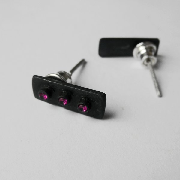 Oryginalność i prostota. Kolekcję cechuje elegancja i prostota jak również ekstrawagancja i indywidualizm. Kolczyki na sztyftach wykonane są z : srebro, cyrkonia. Srebro - próby 0,925, zmatowione, oksydowane.Szerokość- 0,5 cm, długość- 1,5 cm. Termin realizacji zamówienia to 1-2 dni. Na życzenie istnieje możliwość zmiany koloru cyrkonii.