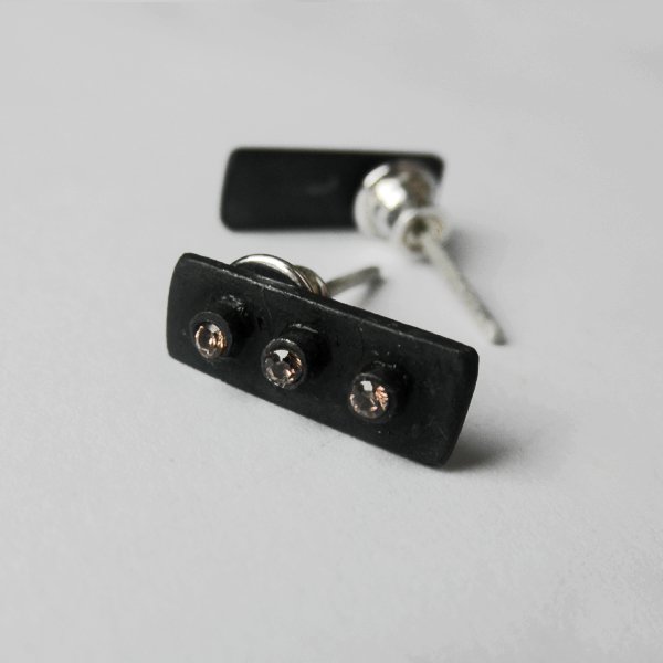 Oryginalność i prostota. Kolekcję cechuje elegancja i prostota jak również ekstrawagancja i indywidualizm. Kolczyki na sztyftach wykonane są z : srebro, cyrkonia. Srebro - próby 0,925, zmatowione, oksydowane.Szerokość- 0,5 cm, długość- 1,5 cm. Termin realizacji zamówienia to 1-2 dni. Na życzenie istnieje możliwość zmiany koloru cyrkonii.