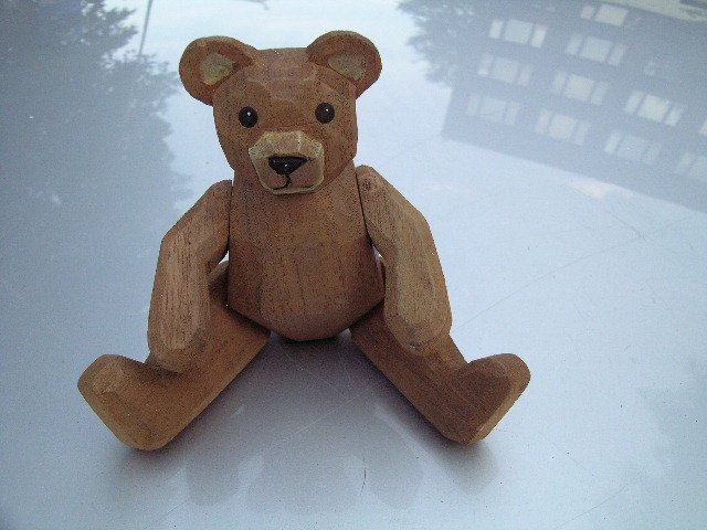 Uroczy drewniany MIŚ. Ma ruchome rączki nóżki...Można go posadzić...i połozyć :)