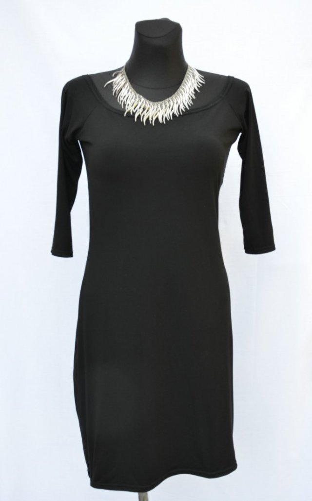 Czarna sukienka marki CATHERINE. Krój w modnym w tym sezonie stylu Simple. Rękawy 3/4. Dekolt w łódkę. Lekka. Materiał elastyczny.