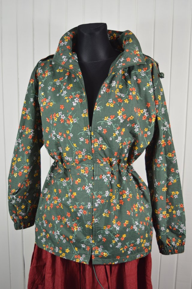 PIĘKNA zielona przeciwdeszczowa wiatrówka we wzór kwiatowy