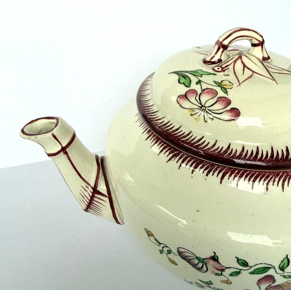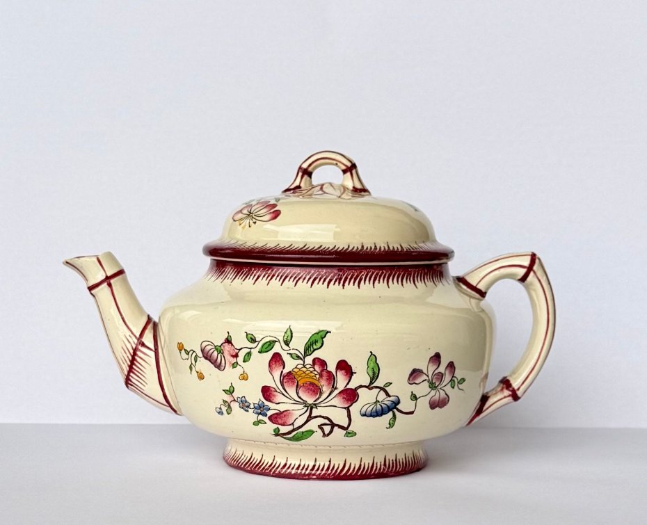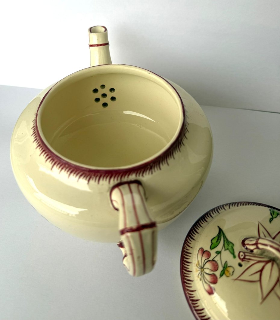 Wyjątkowy, oryginalny, przedwojenny imbryk fajansowy renomowanej francuskiej manufaktury Sarreguemines Faience Factory, w klasycznym i cenionym dekorze "Strasbourg".